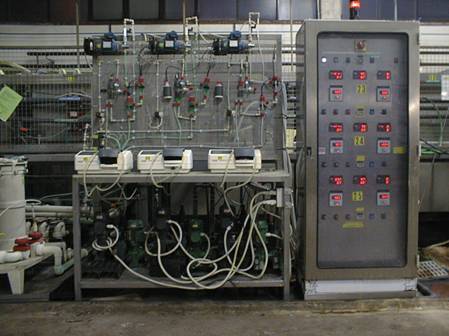 Questo impiantino grazie all'elettronica che lo accompagna, ci permette di analizzare la soluzione di nichel chimico in tempo reale (pH,concentrazione di Nichel) grazie a pH-metri sofisticati ed a spettrofotometri. Questo sistema è in grado di mantenere l'equilibrio fra qualità del prodotto finito e stabilità delle nostre soluzioni.