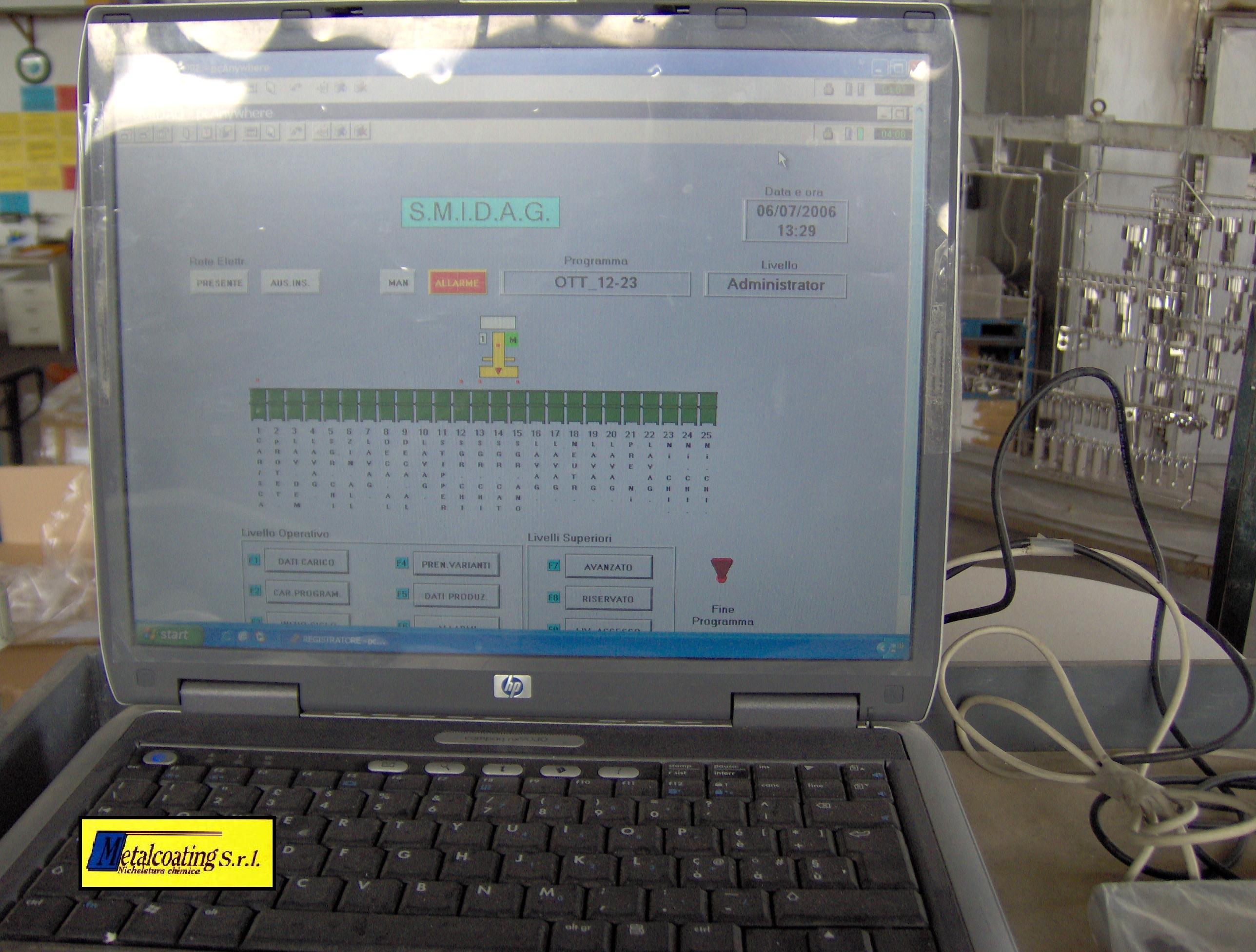 Questo invece č una postazione locale situata in entrambi i nostri laboratori in modo da permetterci di controllare, visualizzare e regolare ogni parte dell'impianto. Inoltre la postazione in foto registra tutte le altre variabili quali (pH, temperatura dei forni, temperatura dei bagni di Nichel) durante il giorno. |